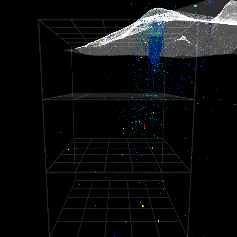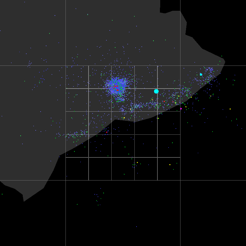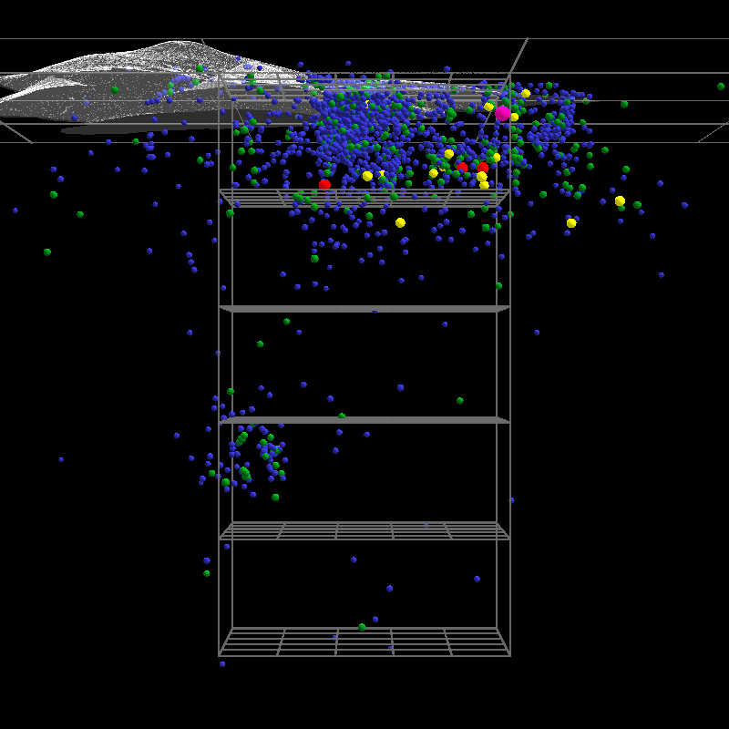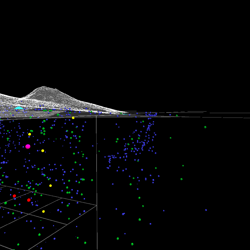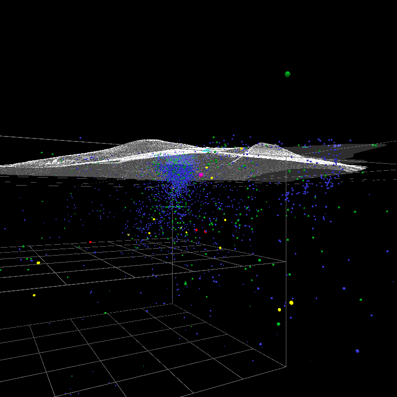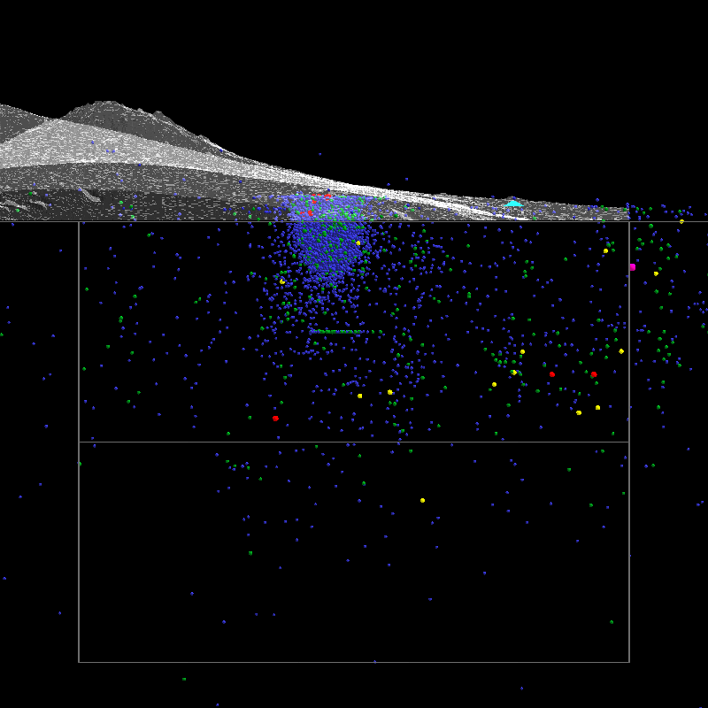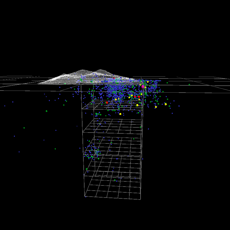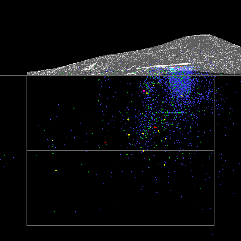 Event markers color coded: M2=blue, M3=green, M4=yellow, M5=red, M6=purple. (Event marker size also reflects magnitude, but probably isn't apparent.)